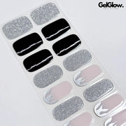 Coolest Y2K Nail Black and Sliver Glitter Nails with Flame Semi Cured Gel Nail Strips - FL23Q2020